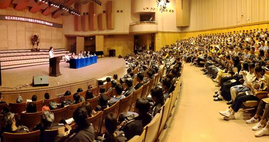 大会在雄壮嘹亮的国歌声中拉开序幕。舞蹈11901班郑玉媛同学作为新生代表发言。她表达了自己与大家相聚在长江大学的幸运与感激,以及与大家一同提升自己的决心和追求:用青春诠释今日的梦想,用汗水锻造明日的辉煌。美术QZ181王亚东同学作为老生代表进行了发言。他通过自己四年的的大学生活和一年的研究生生活,告诫全体新生,在大学要养成良好的学习习惯,要好好把握这来之不易的学习机会,树立远大理想,在认真学好专业课的同时,考取英语,教师资格证等各种技能等级证书,同时广泛听取各种学术讲座,积极踊跃的向党组织靠拢,使自身知识一天天增加,思想一天天拓宽,逐渐走向成熟完善。