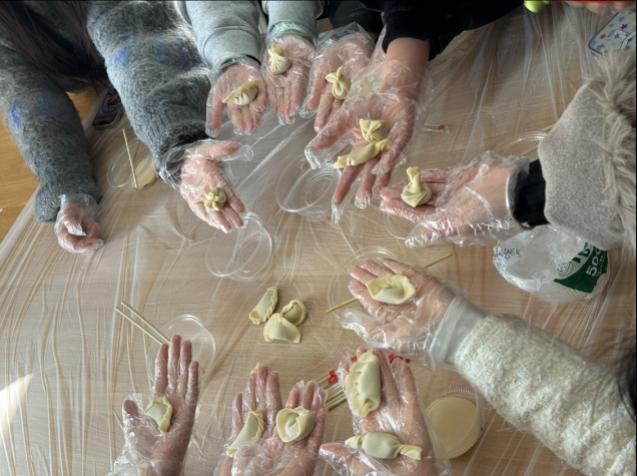 活动一开始,同学们就按照预先分好的小组迅速就位,迫不及待地投身到包饺子的环节当中。研会工作人员早已准备好了新鲜的猪肉馅、饺子皮以及各类工具。各个小组的同学分工协作,各展所长,一边包饺子一边交流心得,场面既温馨又热烈。没过多久,餐盘里就摆满了形态各异、创意满满的饺子,元宝形、月牙形、麦穗形等样式不断涌现,充分彰显了同学们的无限创意和动手能力。在此期间,工作人员还特意在部分饺子里包入栗子,寓意着吉祥与幸运,为活动增添了一份惊喜与期待。