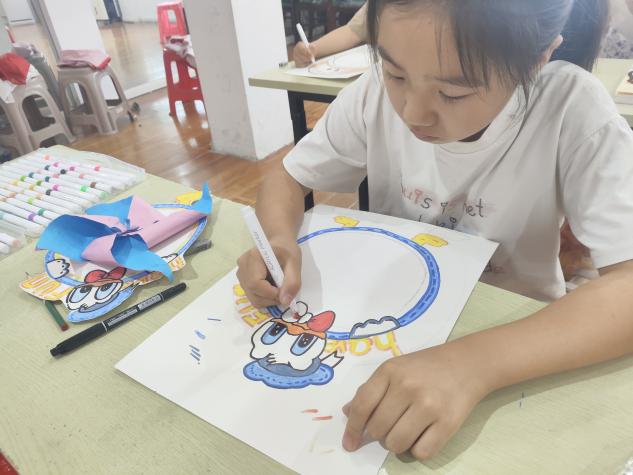 7月25日,孩子们体验了生动有趣的手工课,他们举着自制的卡通风扇欢呼! 活动中,志愿者先演示了制作技巧:裁圆形卡纸、画卡通图案、粘扇叶,简单几步就变身为清凉小扇。孩子们发挥想象,有的给扇面画上可爱动物,有的勾勒出动漫角色,志愿者们穿梭其间,帮着修剪边缘、加固扇柄,活动室里彩笔飞舞,笑声不断。 “看我的奥特曼风扇”张同学举着扇子高兴地说。这一把把独一无二的卡通风扇不仅让孩子们在动手中学到本领,更让他们感受到社区的温暖!