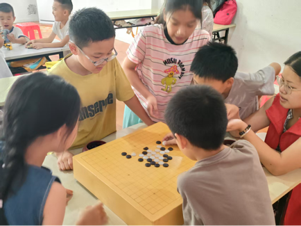 每天下午 4:00 后是“趣味加时赛”。五子棋、数字炸弹、桌面足球赛……笑声此起彼伏。游戏结束,志愿者又化身为“小老师”,一对一辅导暑期作业,解决作业难题。
