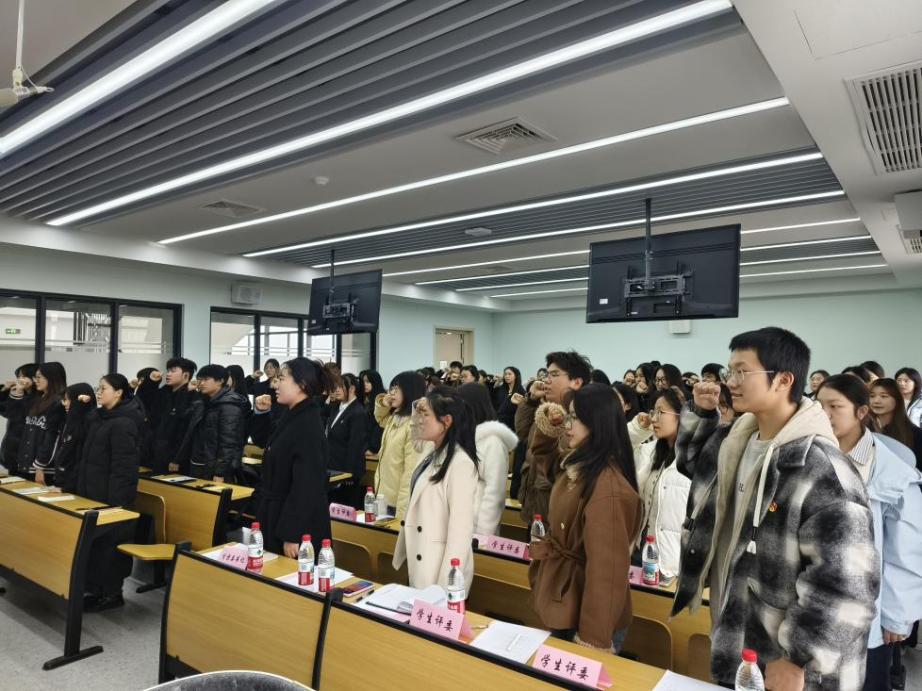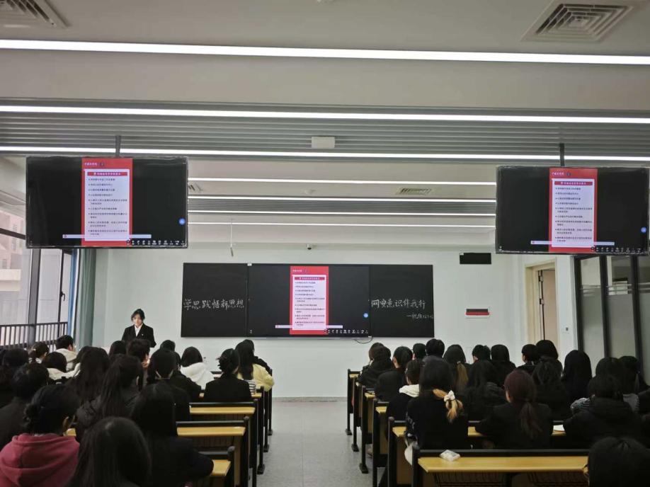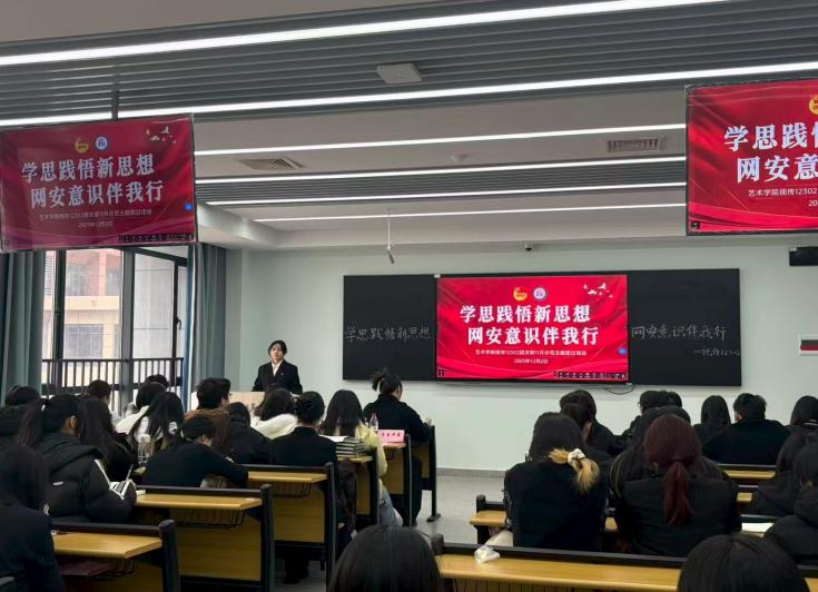 (通讯员 陈晓 摄影 李依骋)艺术学院视传12302团支部于2025年12月2日在长江大学东校区16教B-201教室举办了“学思践悟新思想,网安意识伴我行”示范主题团日活动。此次活动旨在深入学习贯彻党的二十届四中全会精神,坚定青年理想信念,增强网络安全意识。未来技术学院团委书记杨湘虹老师、艺术学院团委书记杨锐老师,以及视传12302团支部全体成员、艺术学院2024级和2025级全体团支书、团委学生会组织与培训部全体成员,共计百余人参与了此次主题团日活动。