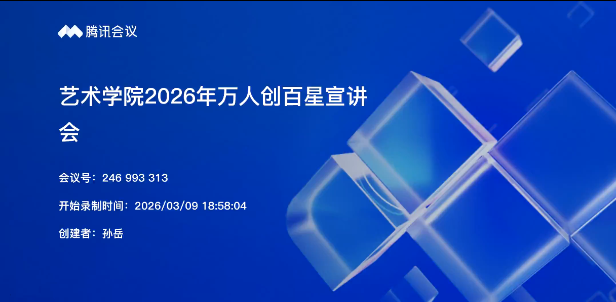 (通讯员 黎素颖)为团结凝聚青年力量,引领学子争做情操高尚、学业优秀、特长鲜明的新时代青年,3月9日晚,艺术学院以线上形式召开2026年“万人创百星”活动申报宣讲会,面向全院各年级有意向申报的优秀学生开展专项指导,会议由学院辅导员孙岳主持。