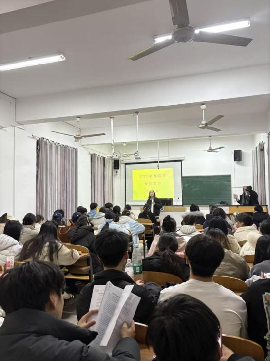 (通讯员陈贝尔)2025年12月8日下午5:30,长江大学艺术学院舞蹈系在Y307教室举办2022级舞蹈学教育实习分享会。分享会由张冬琦老师主持,特邀22级舞蹈学专业优秀实习生代表周煦晨、邓玉轩、蔡贤三位同学为23级全体学生分享教育实习的经历与经验。