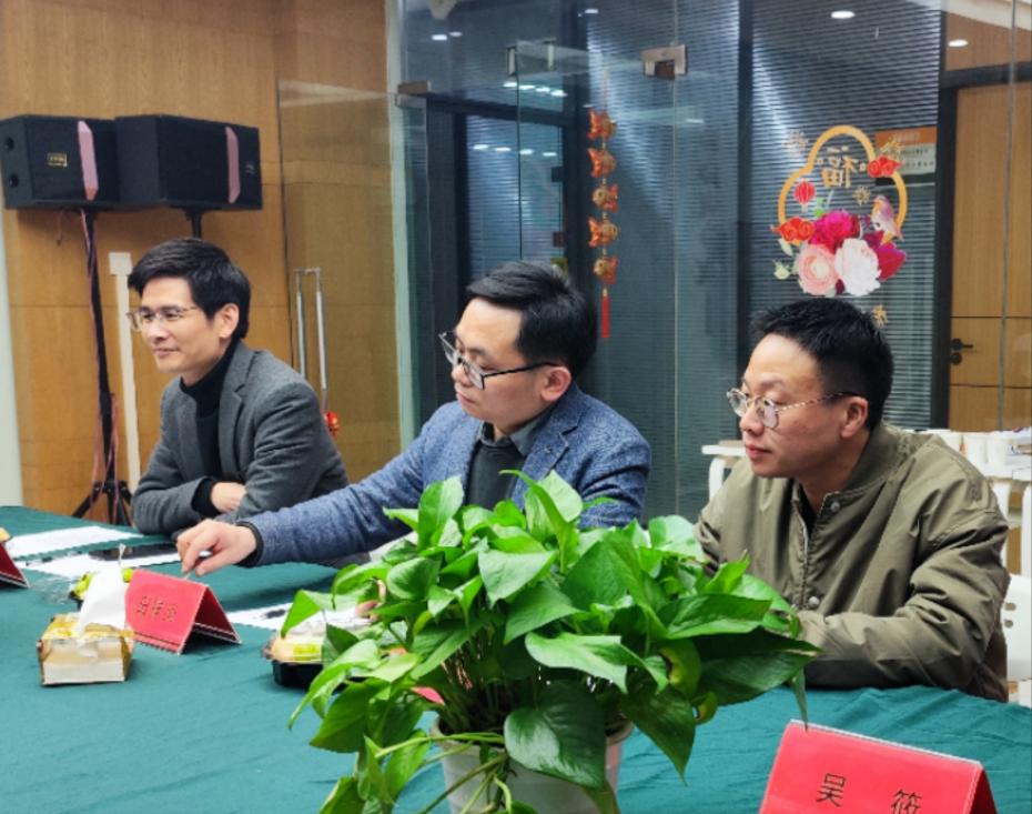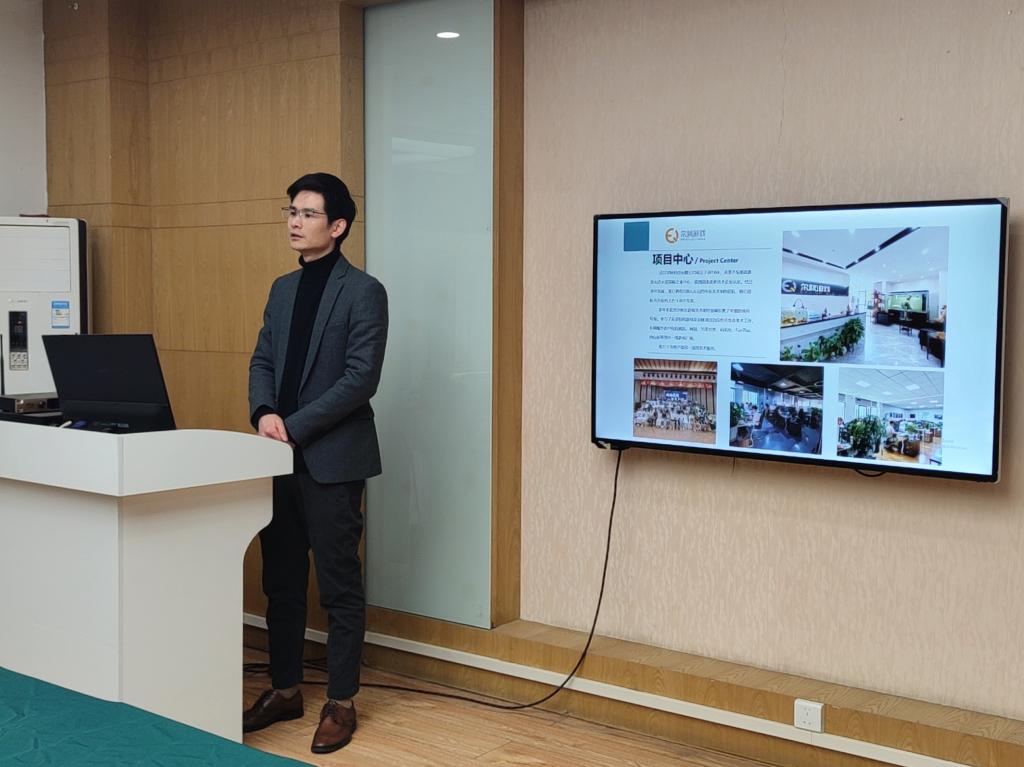 在参观了尔秋科技的工作环境和实践基地后,双方移至会议室,开始了正式的交流。首先,尔秋科技副总经理唐元和涂一龙分别就尔秋科技的发展概况、业务领域和市场前景等进行了介绍。