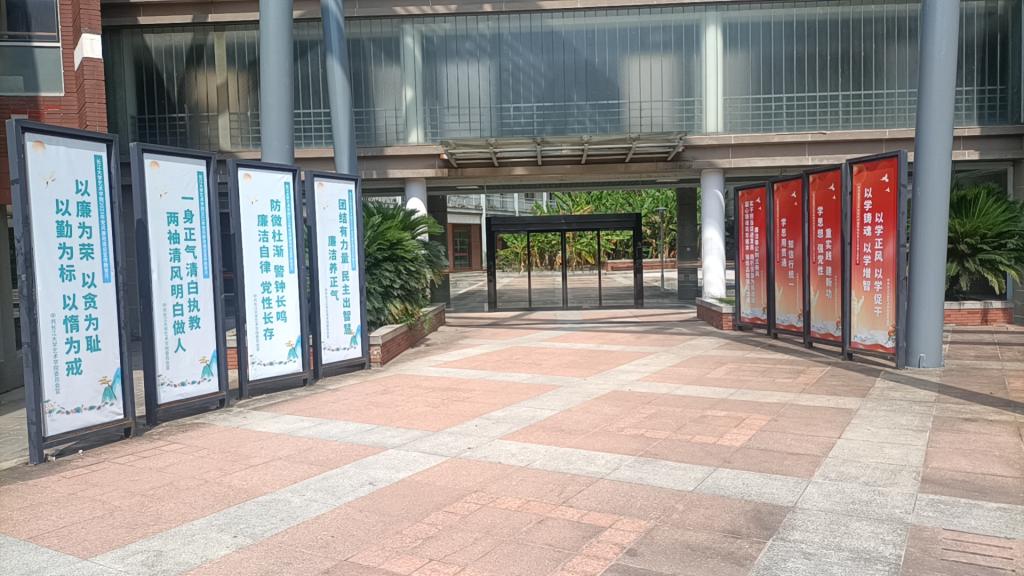 四是宣传警示教育,营造风清气正学院生态。学院通过设计制作廉洁文化宣传展板在各个宣传栏、橱窗等进行展示,在学院师生当中推动形成思廉、倡廉、促廉的风尚,营造“清正校园,廉润心田”的优良氛围。