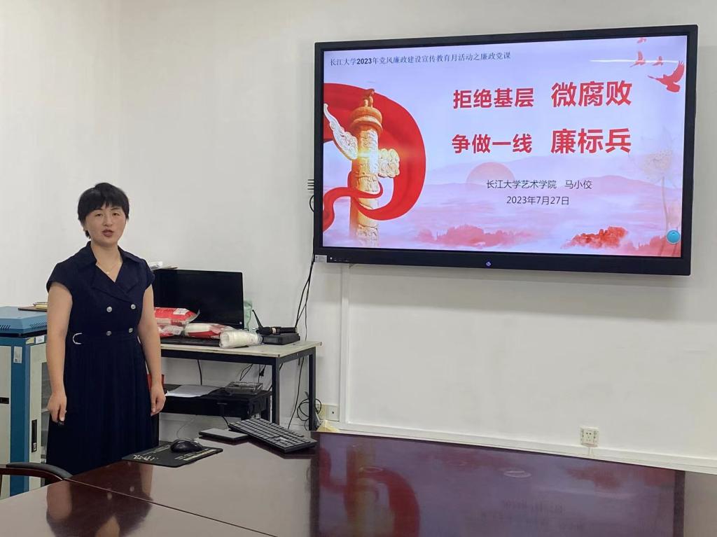 一是强化理论学习,夯实清正廉洁思想根基。在7月27日召开的艺术学院党风廉政建设专题会议上,党委书记马小佼带领学院班子成员学习了《长江大学2023年党风廉政建设宣传教育月活动方案》并做出工作部署,深入学习习近平总书记关于全面从严治党重要论述、中央纪委二次全会精神和省委关于纪律教育工作安排等内容。